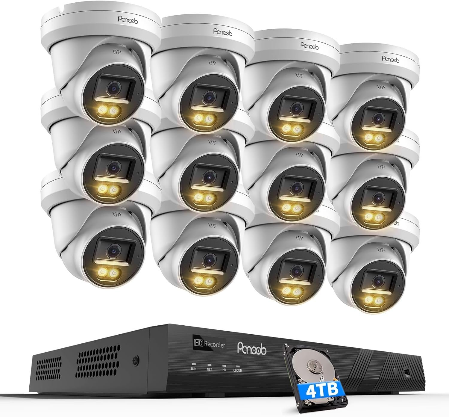 16 Channel Security Camera System 4K, 12x 8MP Wired IP Dome PoE Camera, Spotlight Color Night Vision, Human Vehicle Detection, Built-in Mic, Remote Access, 4K 16CH NVR 4TB HDD, PD93BA1216-8MD