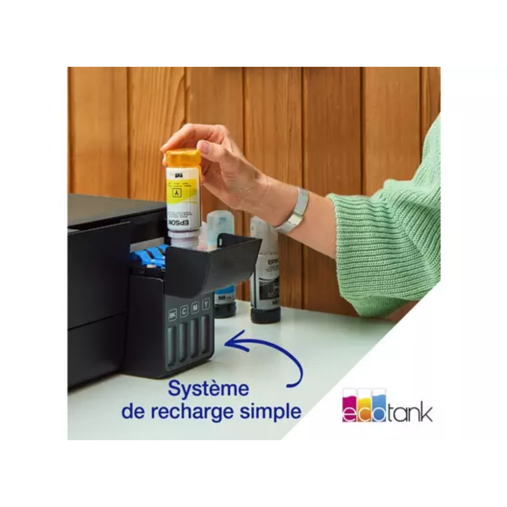 - Avec son système de réservoirs d’encre rechargeables haute capacité, l’EcoTank ET-2865 élimine le besoin de cartouches d’encre traditionnelles, vous permettant d’imprimer des milliers de pages sans avoir à vous soucier du remplacement des cartouches.